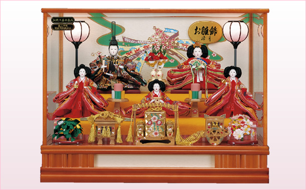 伝統と信用を重んずる「峰月」では、本年も頭、胴、お道具等の一つ一つまで責任と自信をもつ職人が、真心こめて丹念に仕上げた、優雅で気品あふれる格調高いお雛様を豊富に取り揃えました。