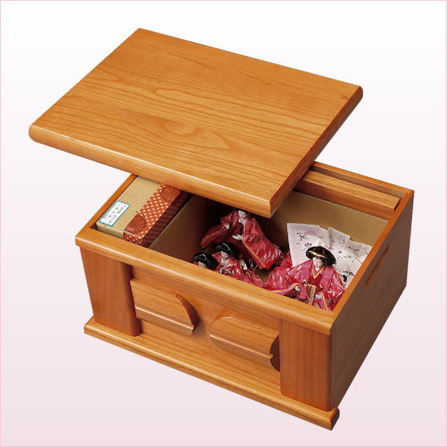 屏風には可愛らしい桜の図柄を描きました。桐を使用していますので軽くて扱いやすい収納飾りですが、五人飾りを施したコンパクトながら豪華な逸品です。 本桐造り:桐(きり)・・・ゴマノハグサ科の落葉低木。材はたんす、小物入れなどの用途がある。"