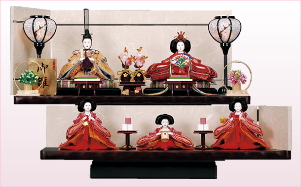 伝統と信用を重んずる「峰月」では、本年も頭、胴、お道具等の一つ一つまで責任と自信をもつ職人が、真心こめて丹念に仕上げた、優雅で気品あふれる格調高いお雛様を豊富に取り揃えました。