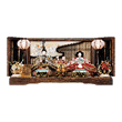 屏風の袖に格子を使用した御殿をイメージさせる飾り台です。屏風には月見桜をイメージした風情のある演出です。