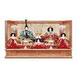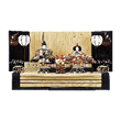 秋田杉造りの屏風と飾り台。木目込み感覚を取り入れ、正桐ちりめんのやわらかな感じを表現したおひなさまです。