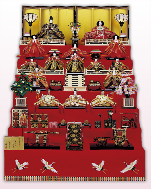 伝統と信用を重んずる「峰月」では、本年も頭、胴、お道具等の一つ一つまで責任と自信をもつ職人が、真心こめて丹念に仕上げた、優雅で気品あふれる格調高いお雛様を豊富に取り揃えました。