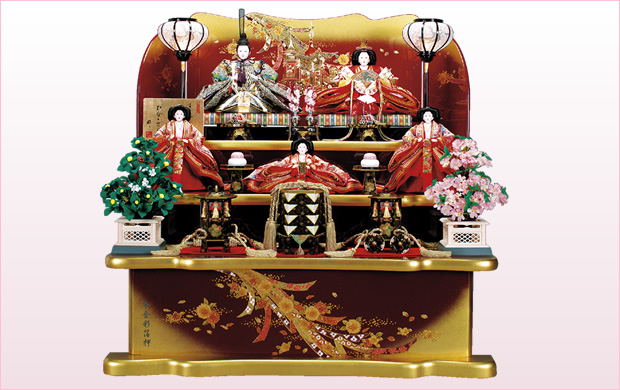 伝統と信用を重んずる「峰月」では、本年も頭、胴、お道具等の一つ一つまで責任と自信をもつ職人が、真心こめて丹念に仕上げた、優雅で気品あふれる格調高いお雛様を豊富に取り揃えました。